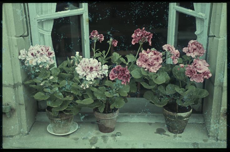 Trois pots de fleurs sur le rebord d’une fenêtre